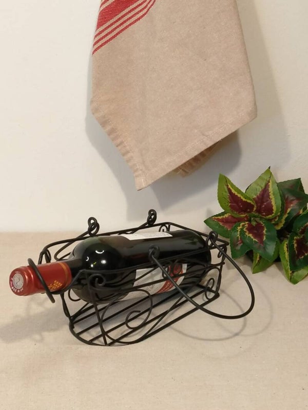 Porte-bouteille à 2 anses. En métal noir au décor volutes. Parfait pour accessoiriser une table campagne chic!